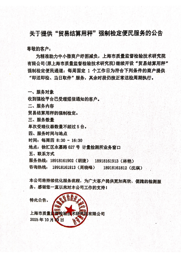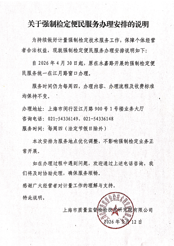 关于(贸易结算用秤)强制检定便民服务办理安排的说明