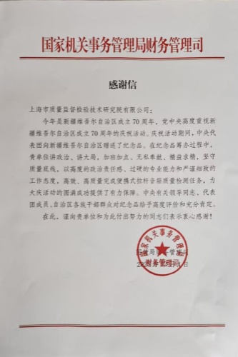 近日,我院收到国家机关事务管理局财务管理司感谢信。