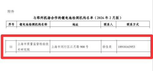 2026年2月6日,我院入选郑州新郑国际机场推荐的航空运输跨境电商带锂电池货物检测机构名单。