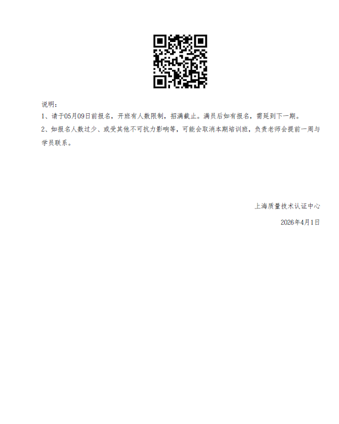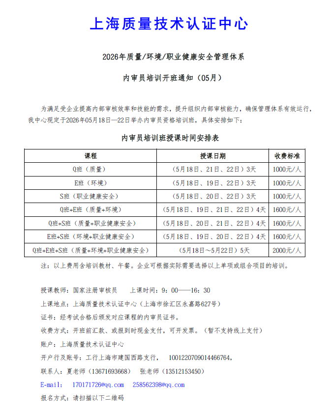 2026年质量环境职业健康安全管理体系内审员培训开班通知(5月)