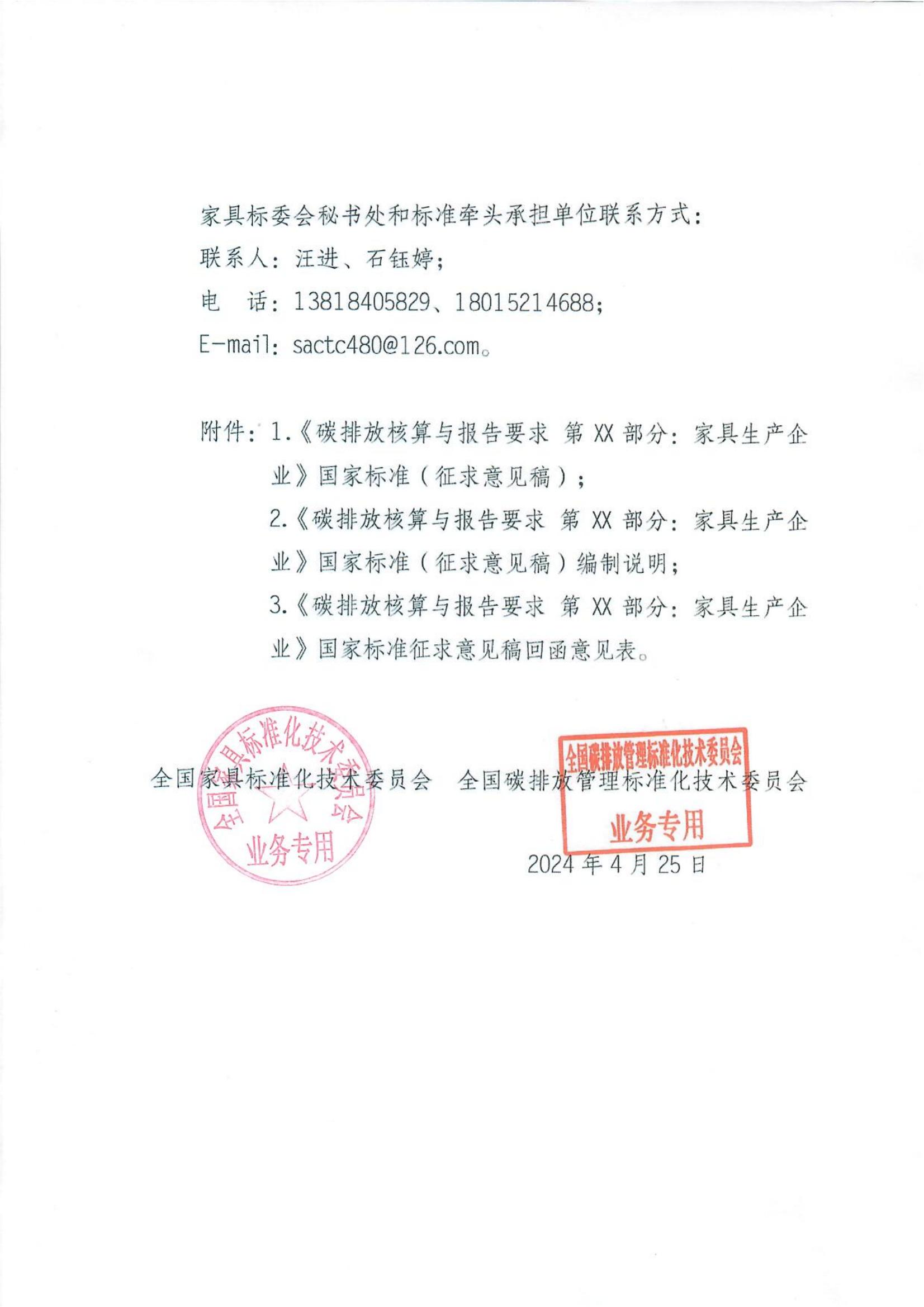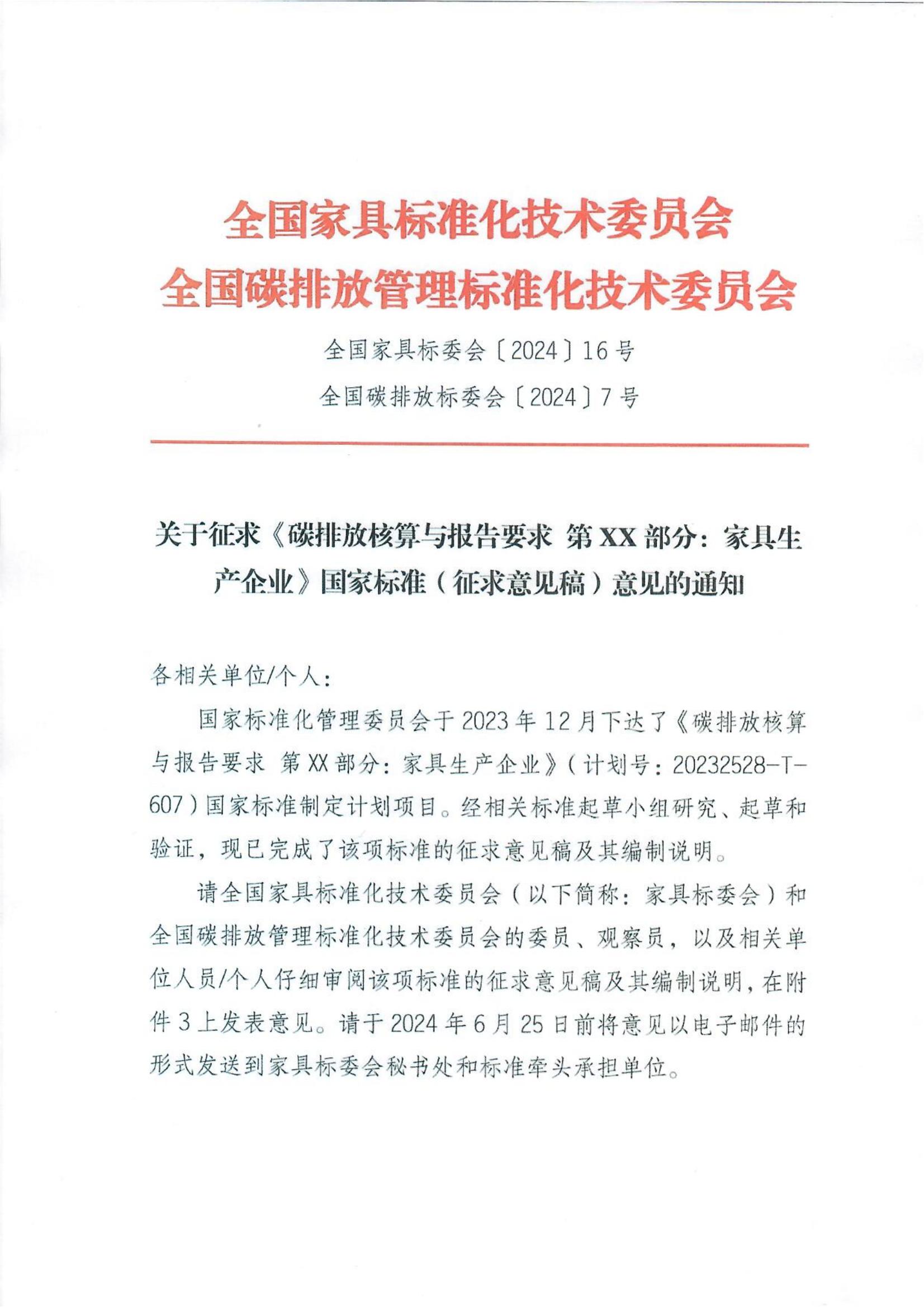 关于《碳排放核算与报告要求 第XX部分:家具生产企业》国家标准(征求意见稿)征求意见的通知