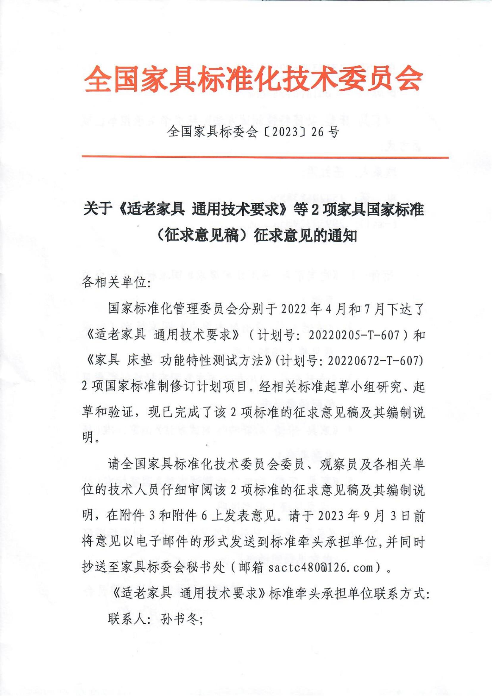关于《适老家具 通用技术要求》等2项国家标准(征求意见稿)征求意见的通知
