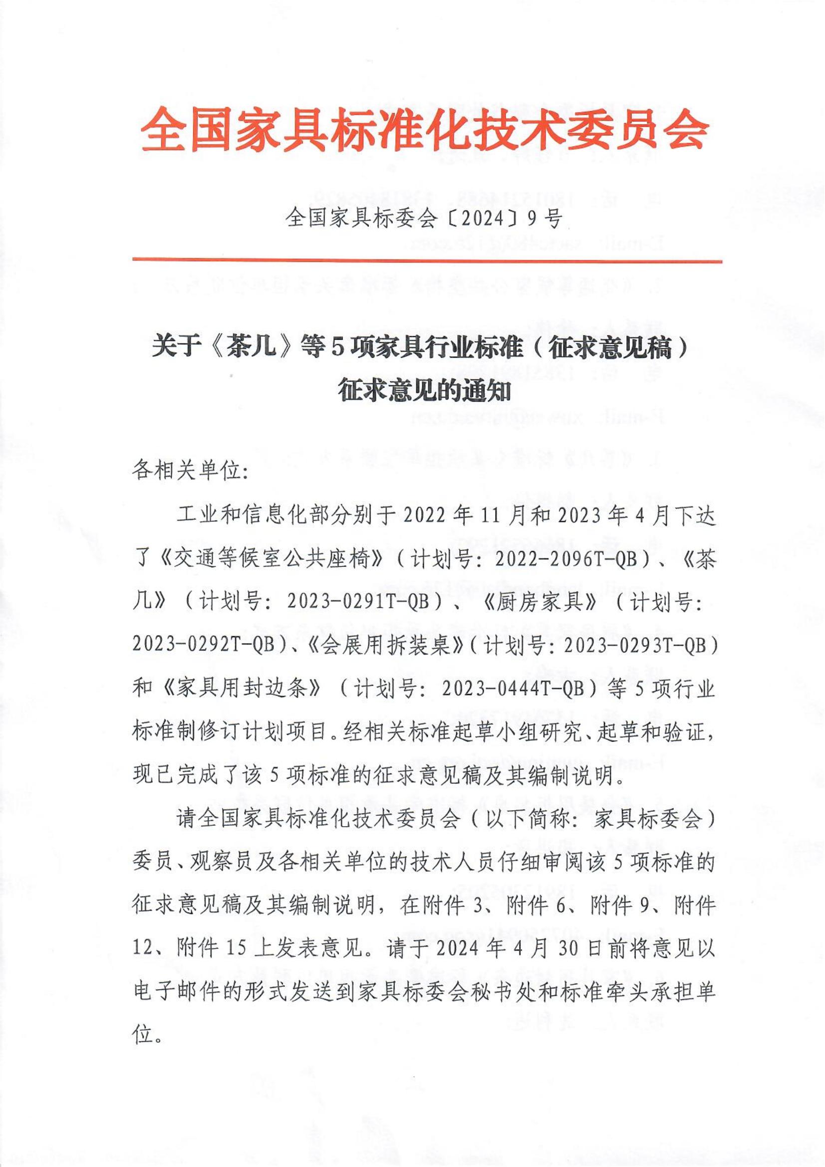 关于《茶几》等5项行业标准(征求意见稿)征求意见的通知