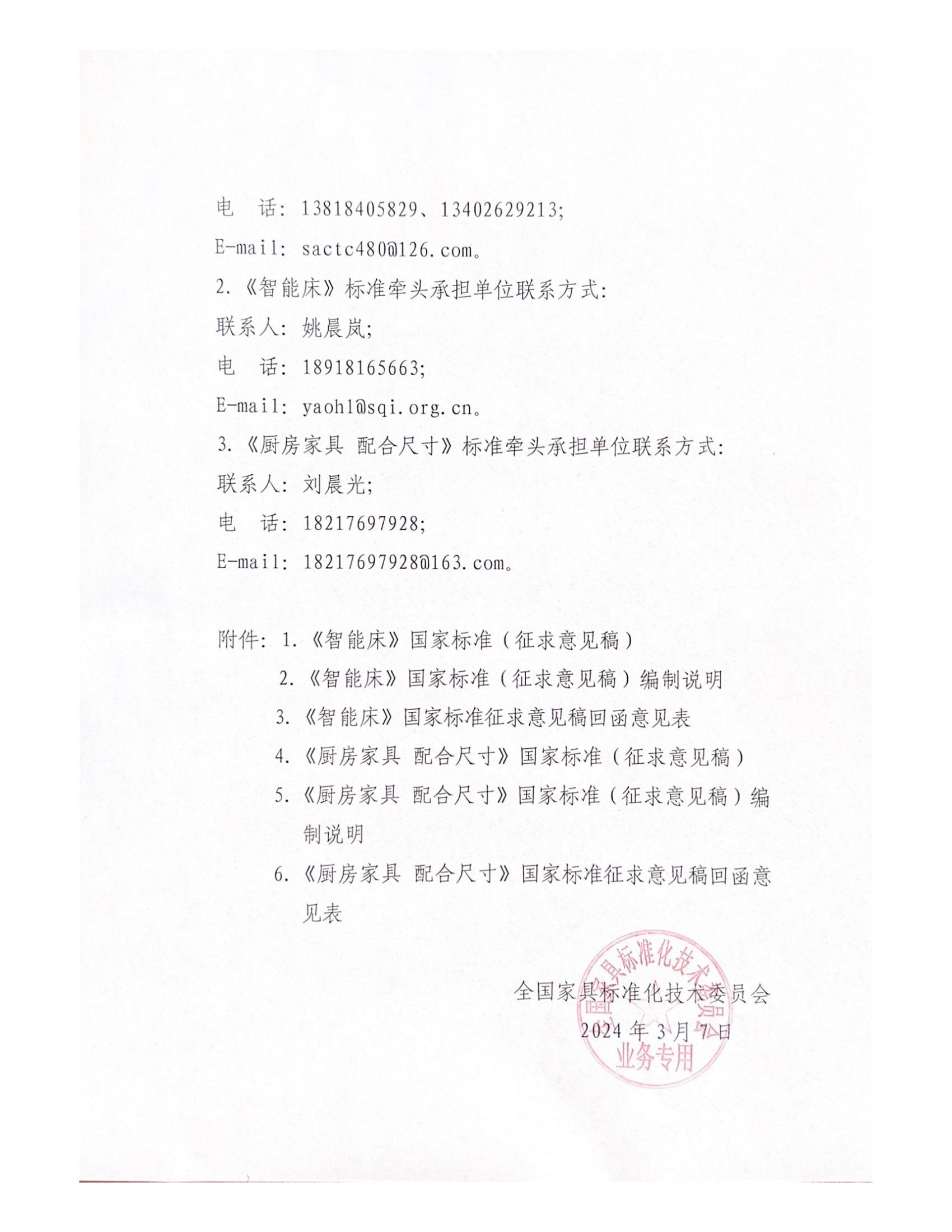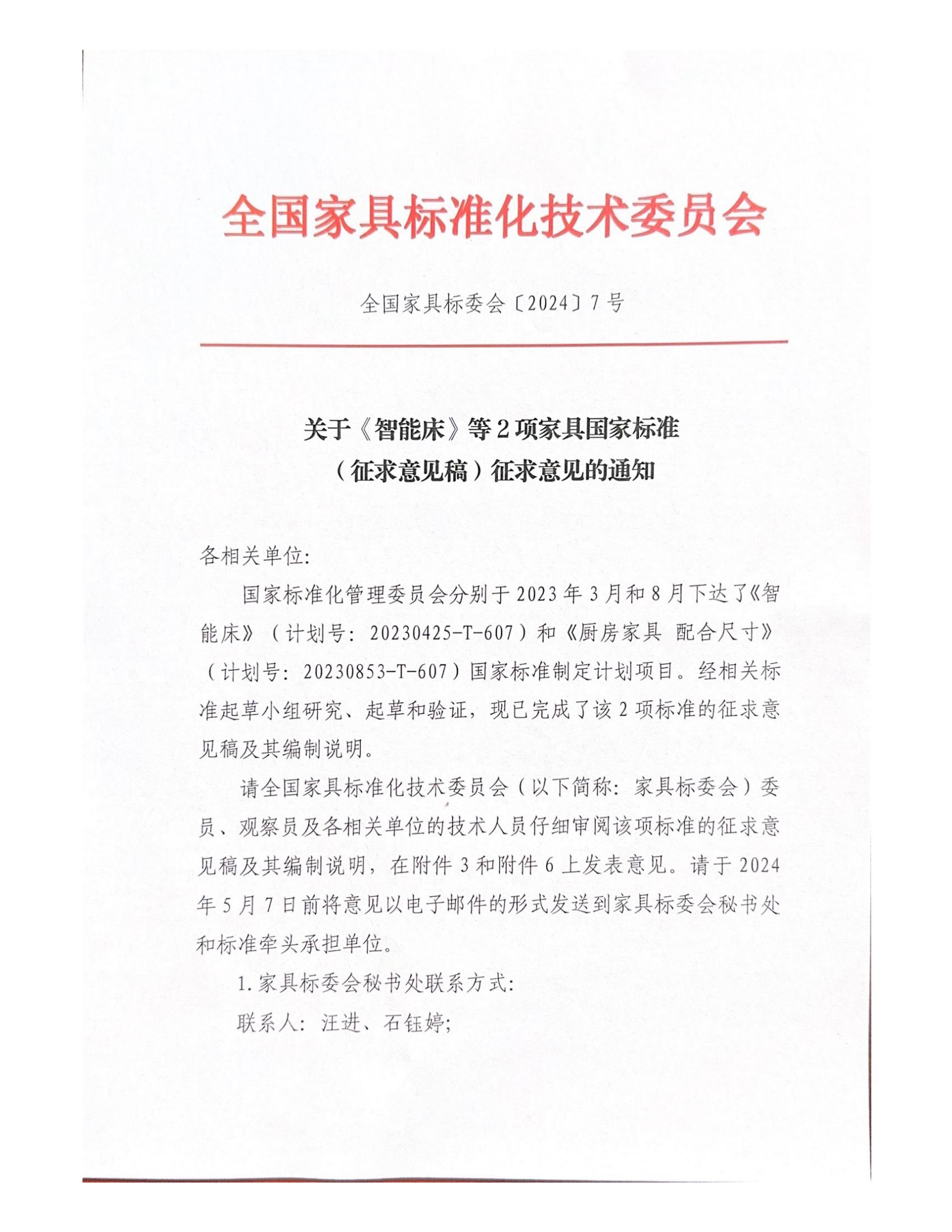 关于《智能床》等2项家具国家标准(征求意见稿)征求意见的通知