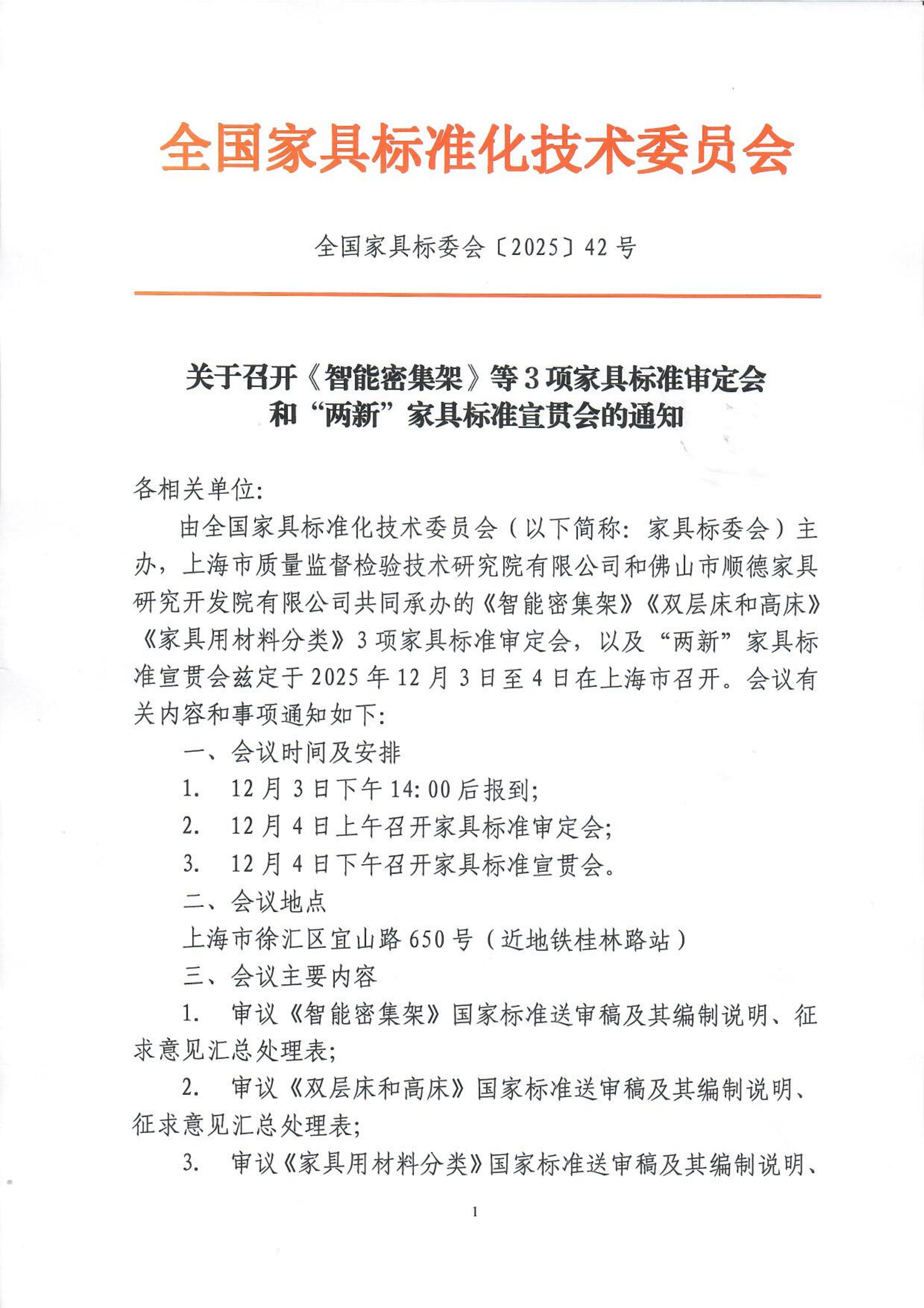 关于召开《智能密集架》等3项家具标准审定会和“两新”家具标准宣贯会的通知