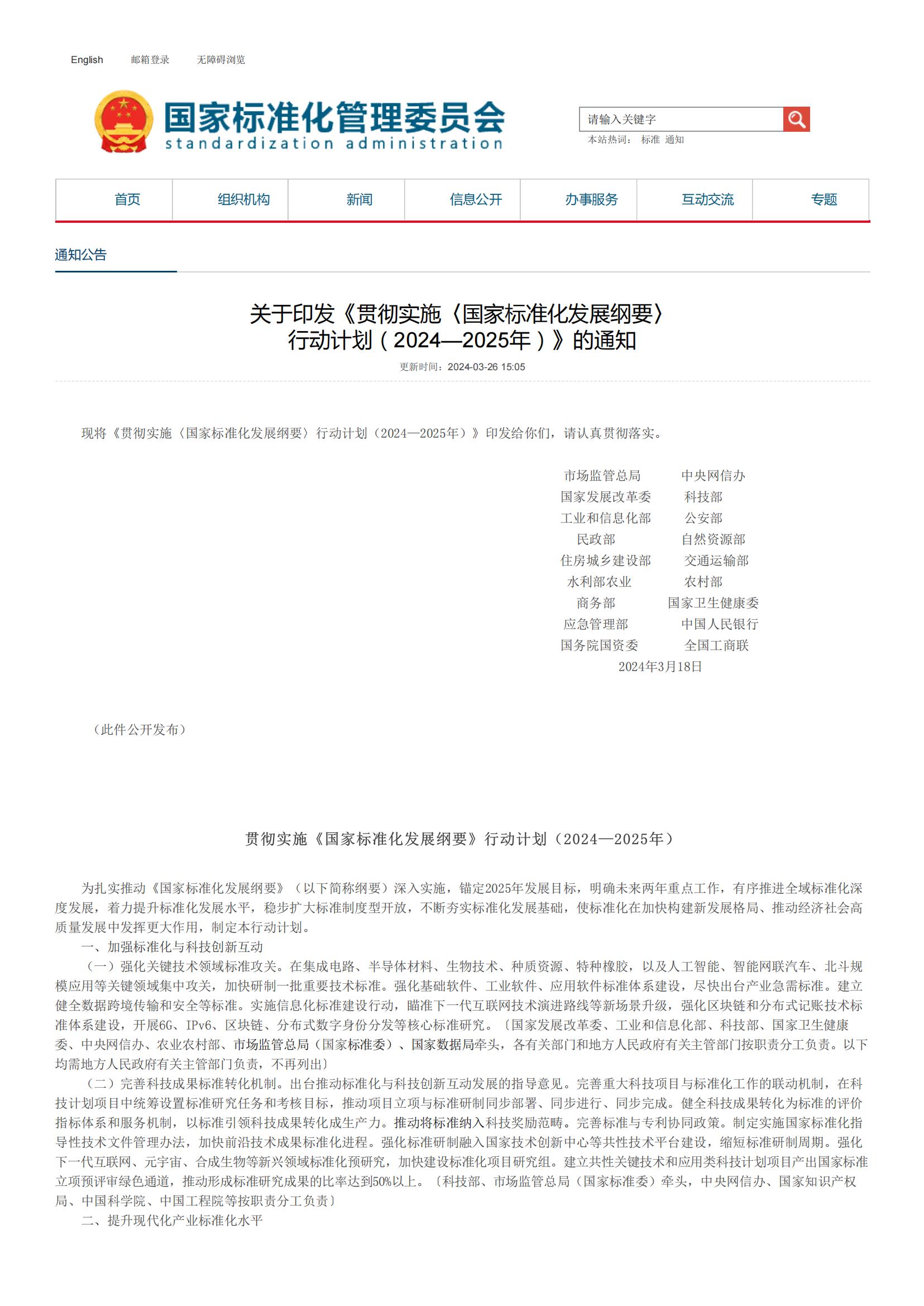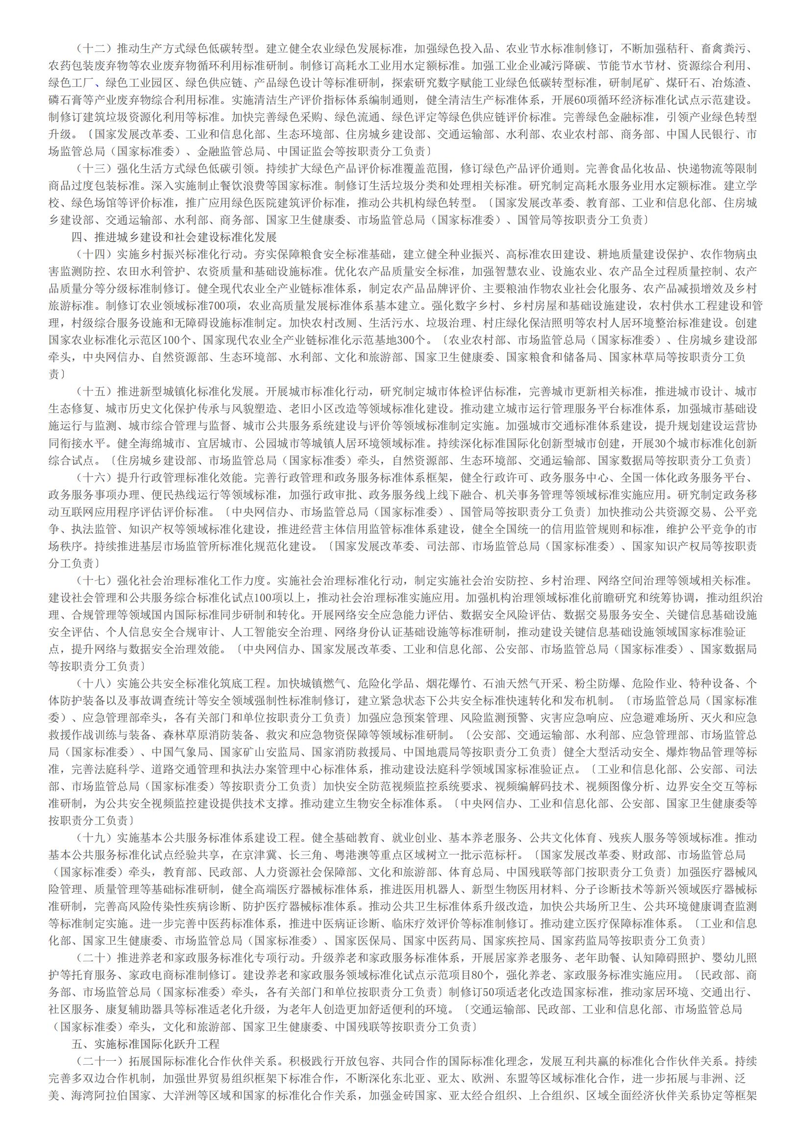 《贯彻实施〈国家标准化发展纲要〉行动计划(2024一2025年)》