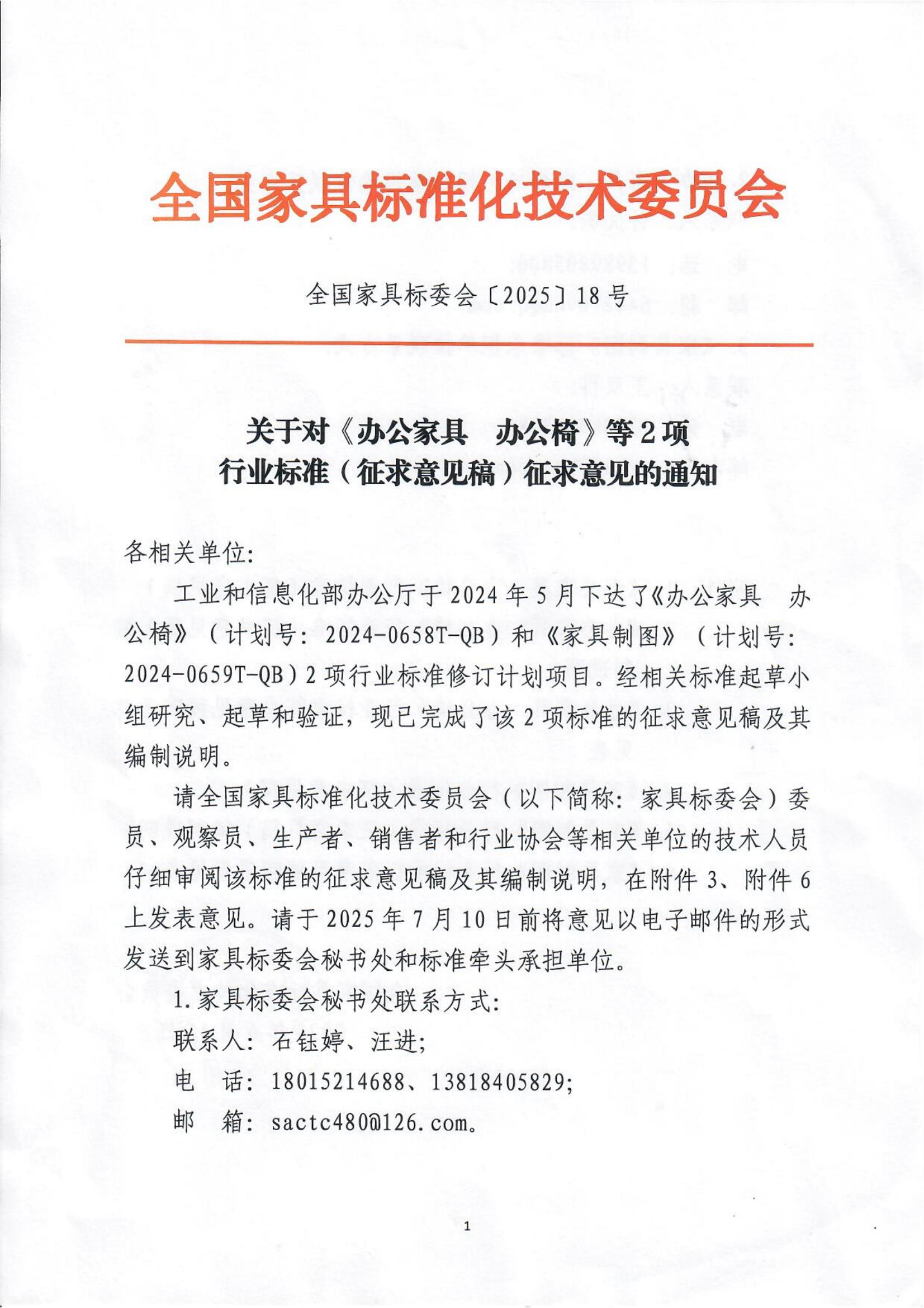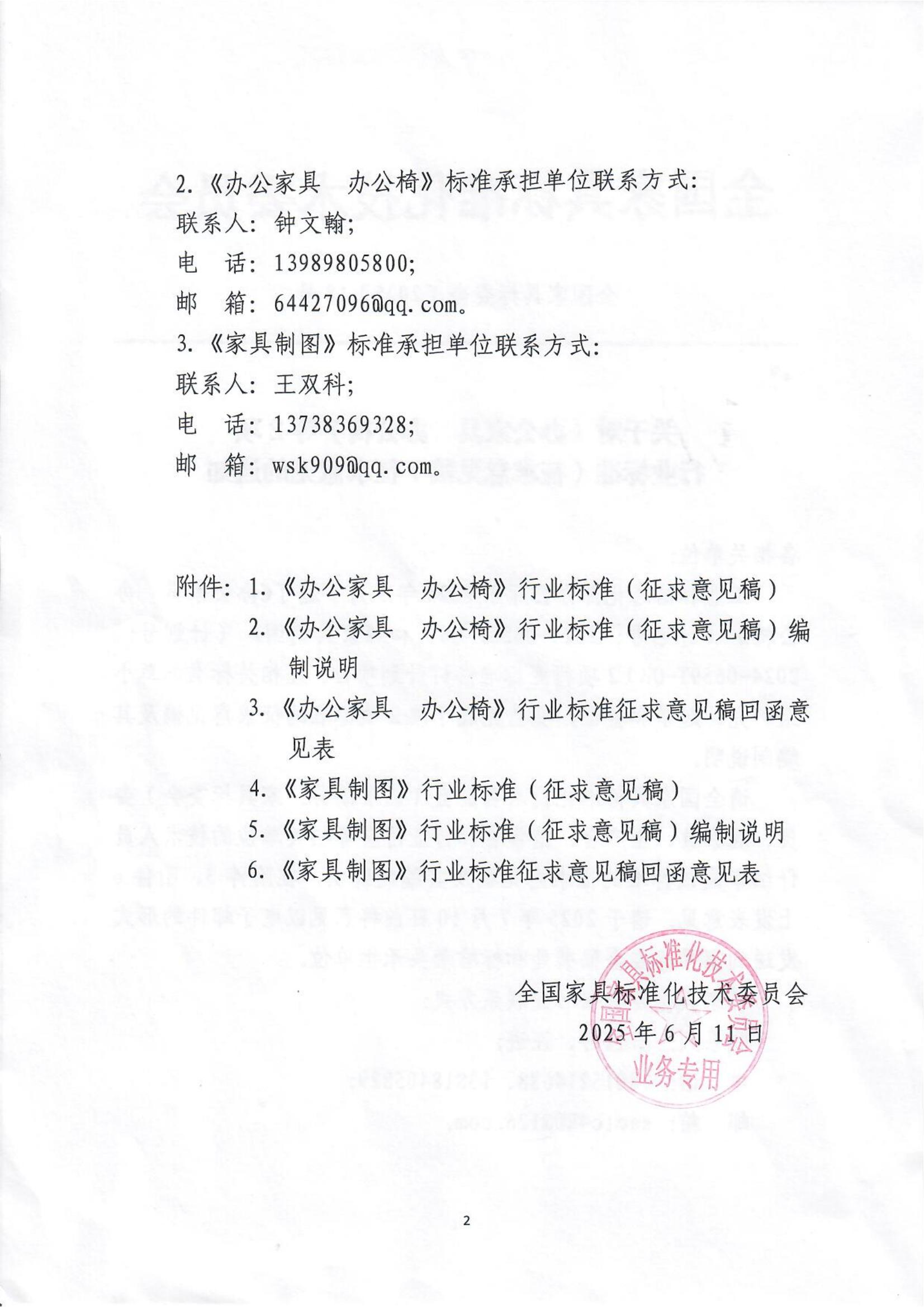 关于对《办公家具 办公椅》等2项行业标准(征求意见稿)征求意见的通知