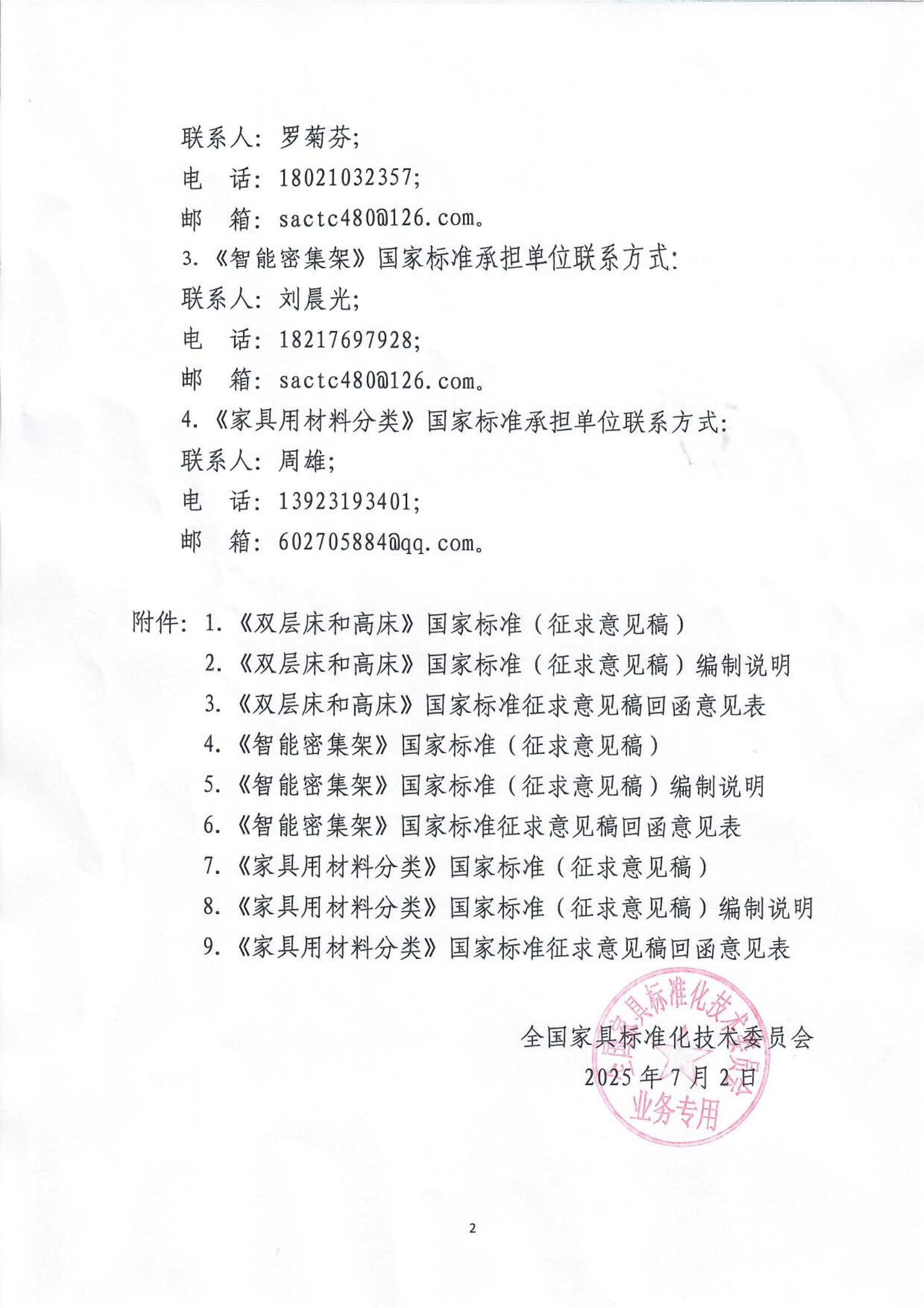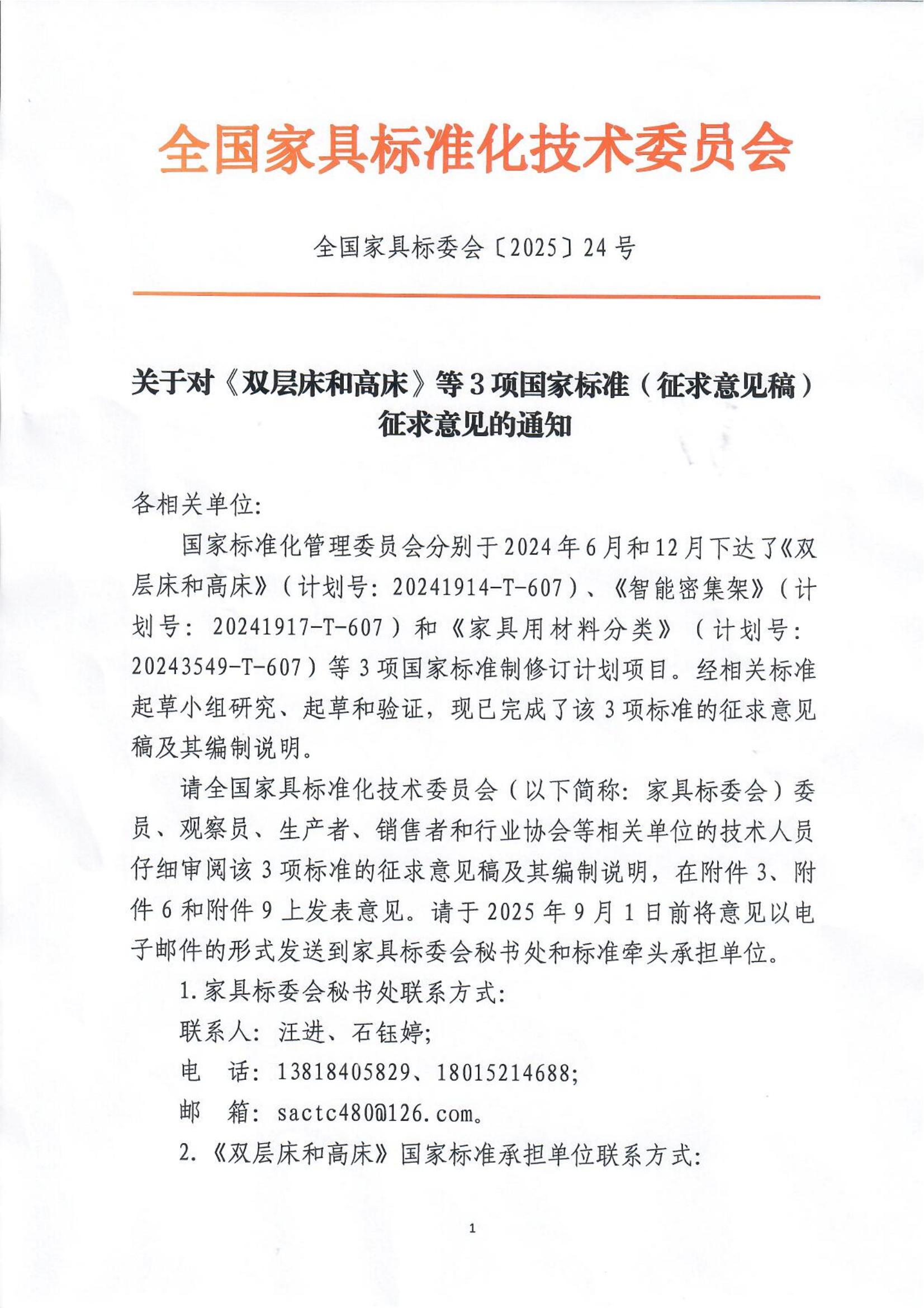 关于对《双层床和高床》等3项国家标准(征求意见稿)征求意见的通知