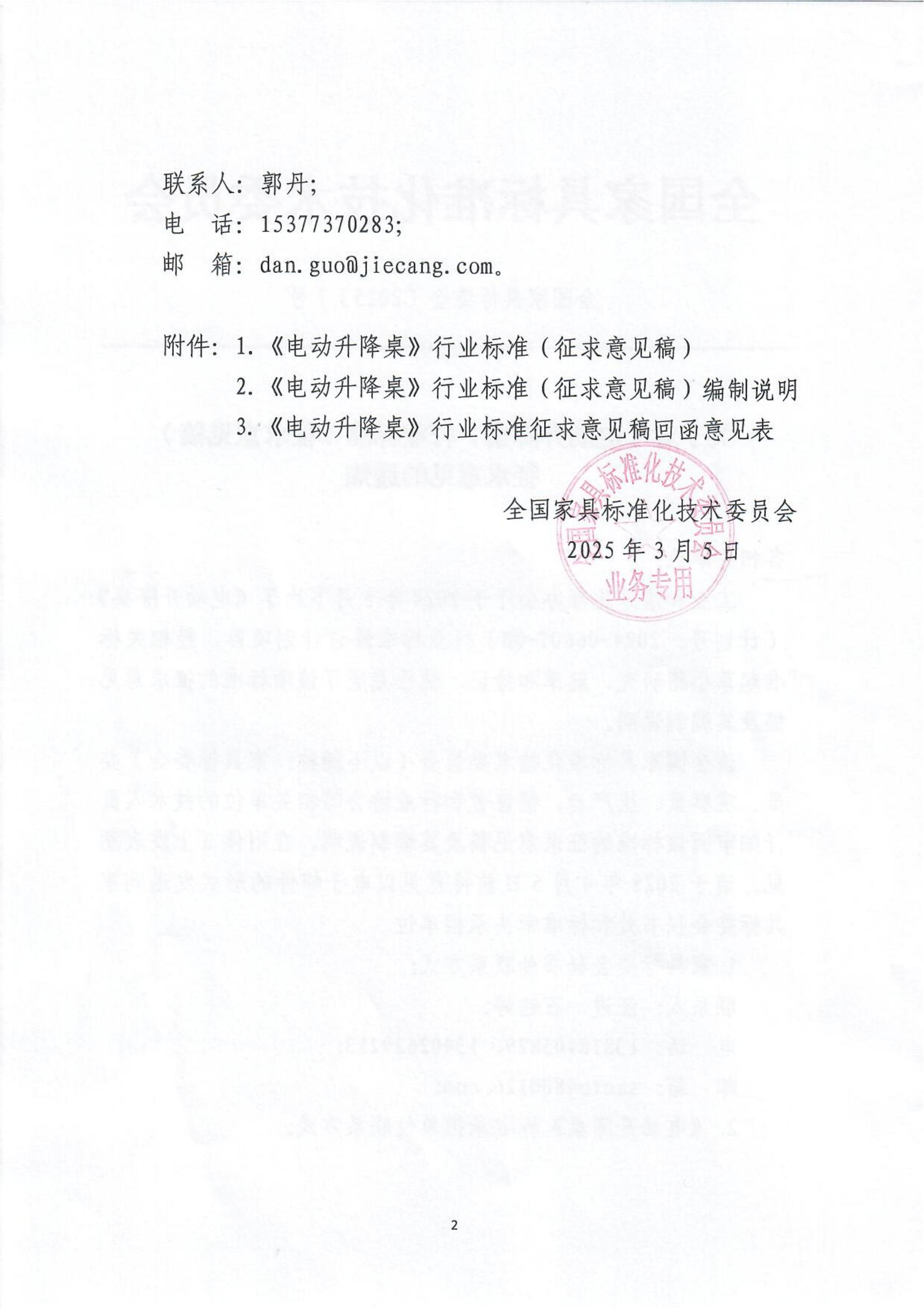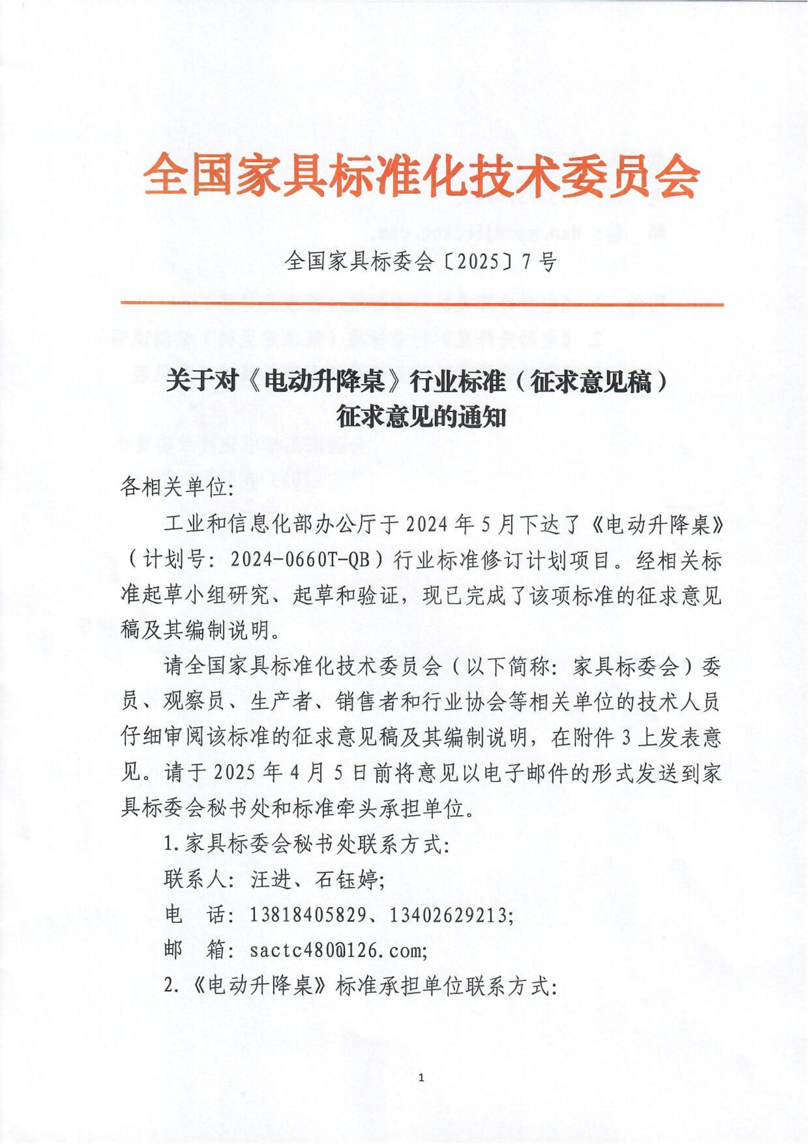 关于对《电动升降桌》行业标准(征求意见稿)征求意见的通知