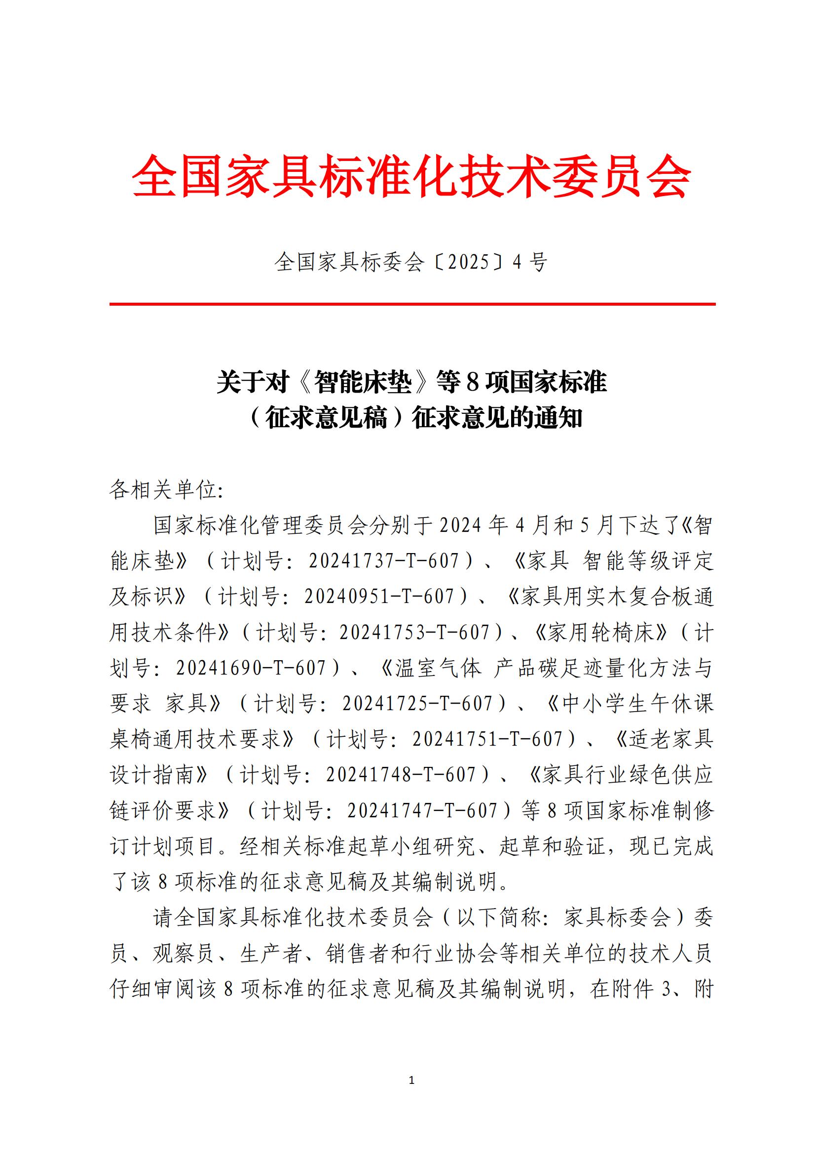 关于对《智能床垫》等8项国家标准(征求意见稿)征求意见的通知