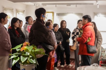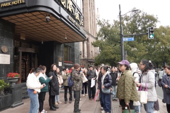 活动在百年地标国际饭店正式拉开帷幕。女职工们循着热播剧《繁花》的光影足迹,开启了一场沉浸式的城市漫步。沿着黄河路缓缓前行,大光明电影院的摩登光影、体育大厦的奋斗印记、金门大酒店的岁月沉淀逐一铺展,伴随着专业讲解员娓娓道来的讲述,大家不仅了解了这些建筑背后的城市发展历程,也聆听了不同时代女性在上海建设中所留下的奋斗故事。在历史与现实的交汇中,女职工们真切感受到城市更新的蓬勃活力,也愈发珍视脚下这片热土所承载的温暖记忆。